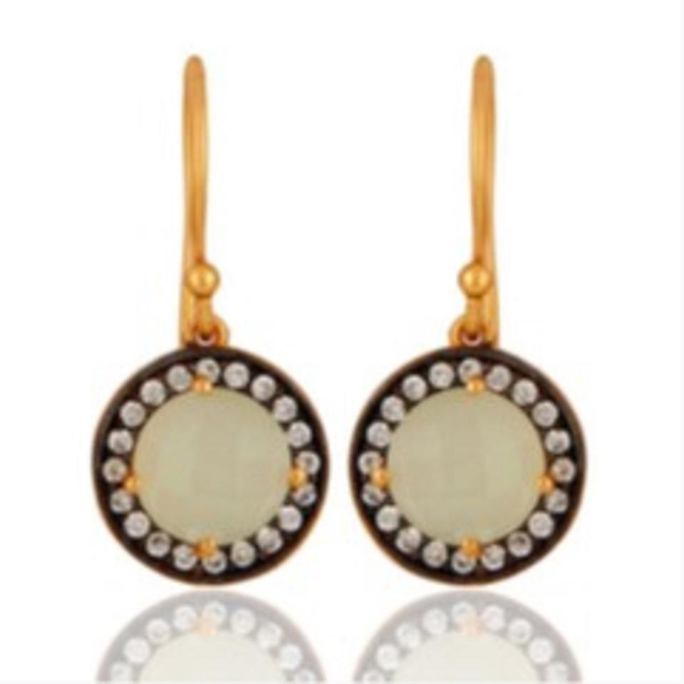 มาใหม่ Aqua Chalcedony พลอย925เงินสเตอร์ลิงต่างหูทรงกลม