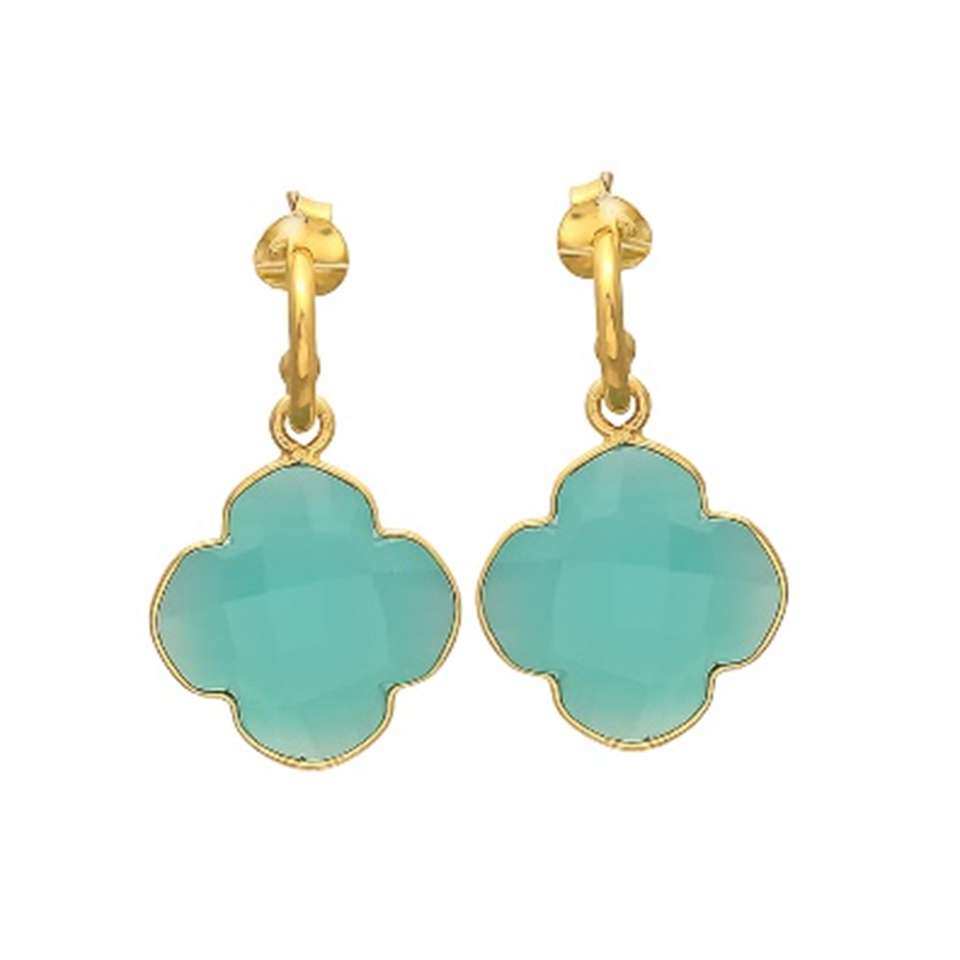 มาใหม่ Aqua Chalcedony พลอย925สเตอร์ลิงโคลเวอร์รูปร่างต่างหูเงิน