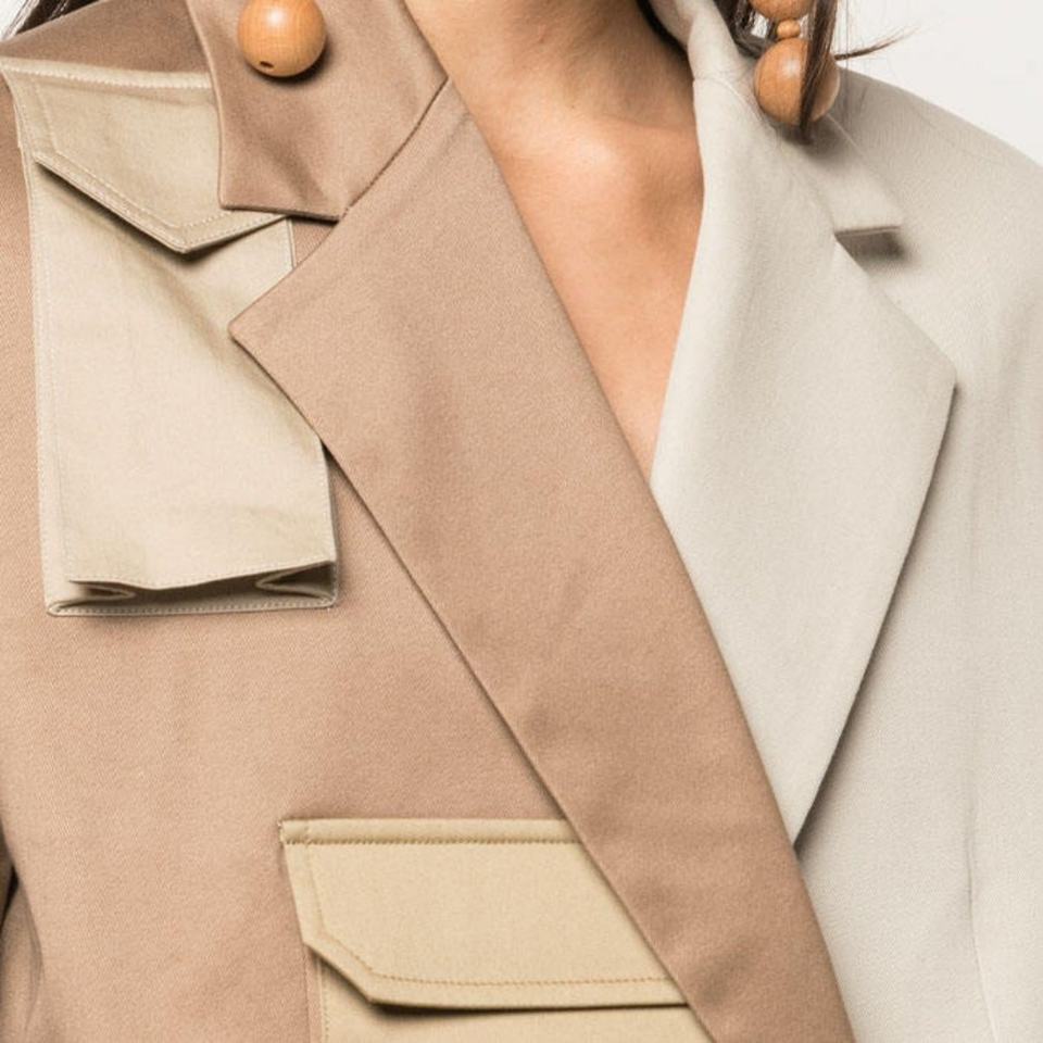 แจ็คเก็ตใหม่มาแรงสำหรับฤดูใบไม้ร่วงสำหรับผู้หญิง แจ็คเก็ตสูทสไตล์ธุรกิจสุดหรู เรียบง่าย วินเทจ ทรงโอเวอร์ไซส์ มีกระเป๋าปะติด ผ้าลินินผสมผ้าฝ้าย