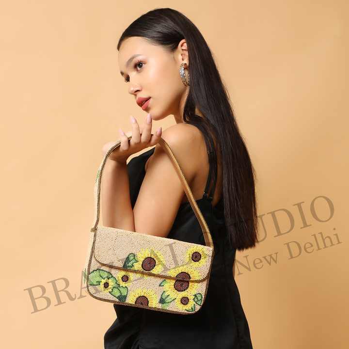 กระเป๋าคลัทช์สะพายไหล่ลายเรขาคณิตประดับลูกปัดเดี่ยวสำหรับผู้หญิง ดีไซน์เนอร์แฟชั่น BRAZEAL STUDIO รุ่นใหม่ล่าสุด เหมาะสำหรับงานแต่งงานและเจ้าสาว