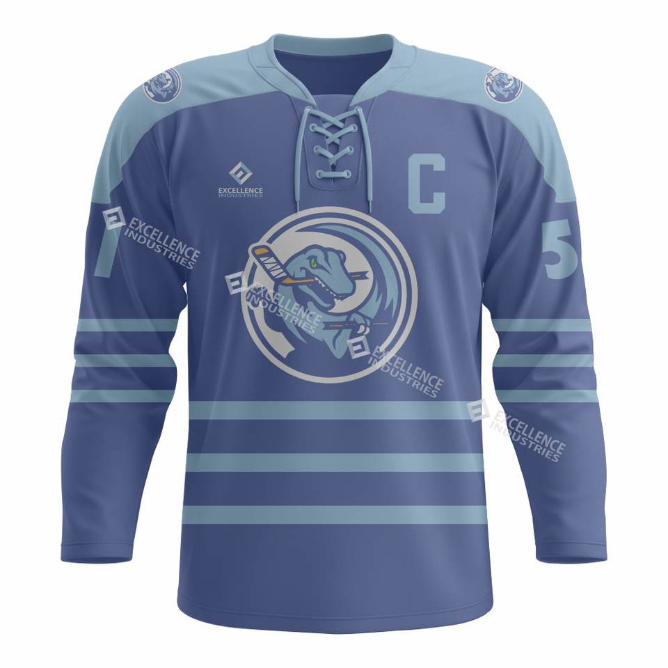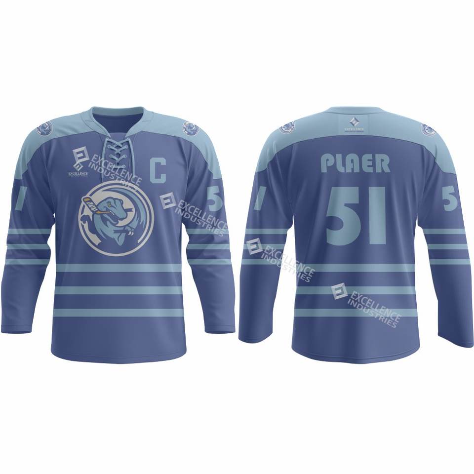 สินค้ามาใหม่ ชุดฮอกกี้น้ำแข็งดีไซน์สั่งทำพิเศษ คุณภาพระดับนานาชาติ ปักโลโก้และชื่อด้วยเทคนิค Tackle Twill ระบายอากาศได้ดี แห้งเร็ว เหมาะสำหรับฤดูร้อน