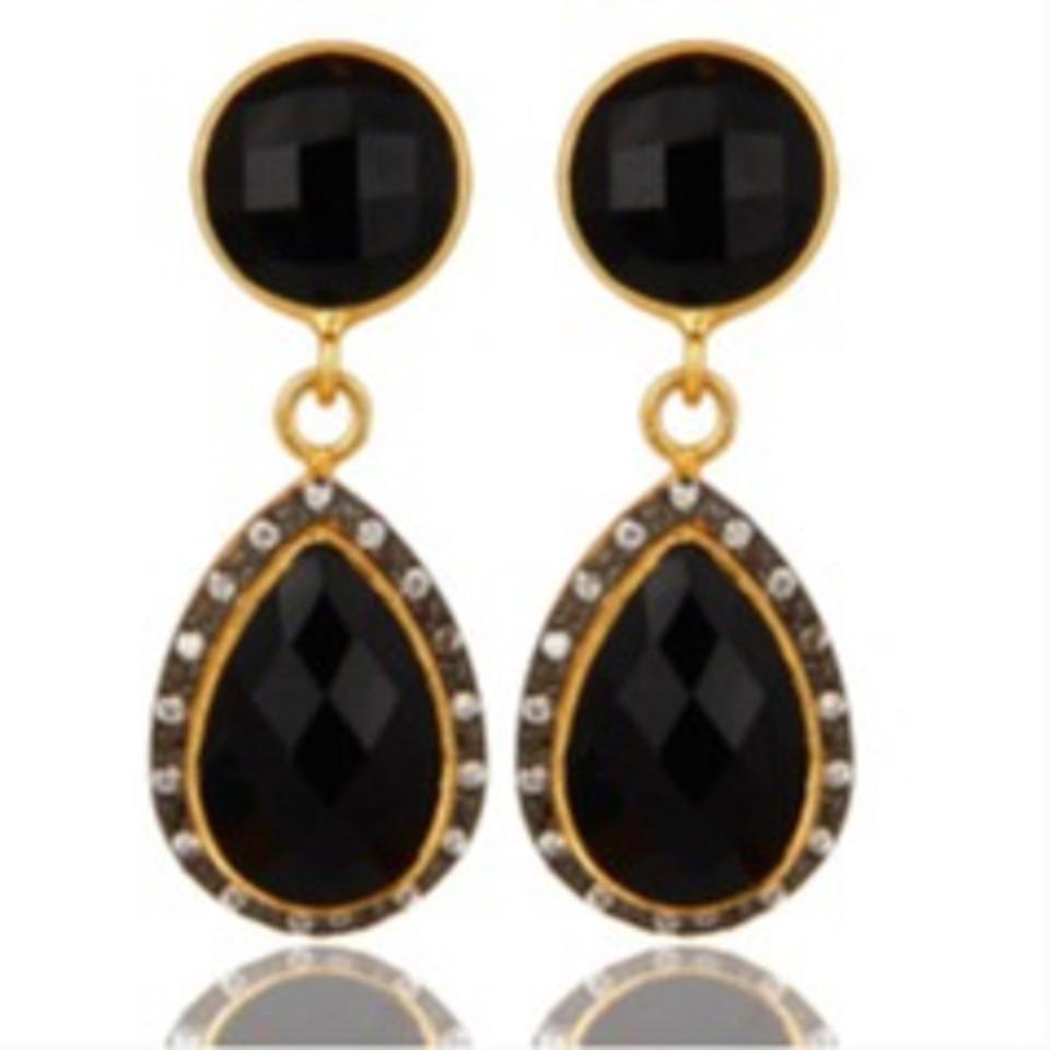 มาใหม่สีดำนิลพลอย925เงินสเตอร์ลิงรอบและลูกแพร์รูปร่างต่างหู