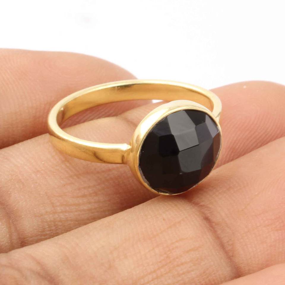สินค้ามาใหม่สีดำอัญมณีโอนิกซ์925แท้เงินสเตอร์ลิงชุบทอง18K แฮนด์เมดแหวนกลม12มม. เครื่องประดับผู้หญิง