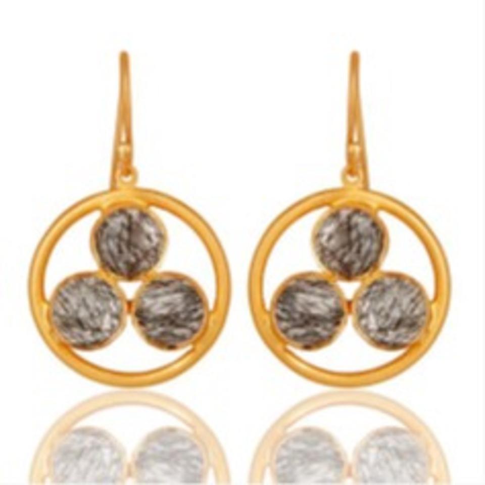 มาใหม่สีดำ Rutile Hydro พลอย925เงินสเตอร์ลิงรอบรูปร่างต่างหู