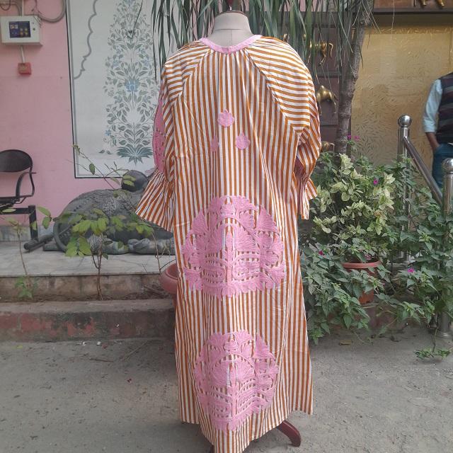 ชุดเดรสผ้าฝ้ายพิมพ์ลายบล็อกมาใหม่พร้อมดีไซน์ปัก