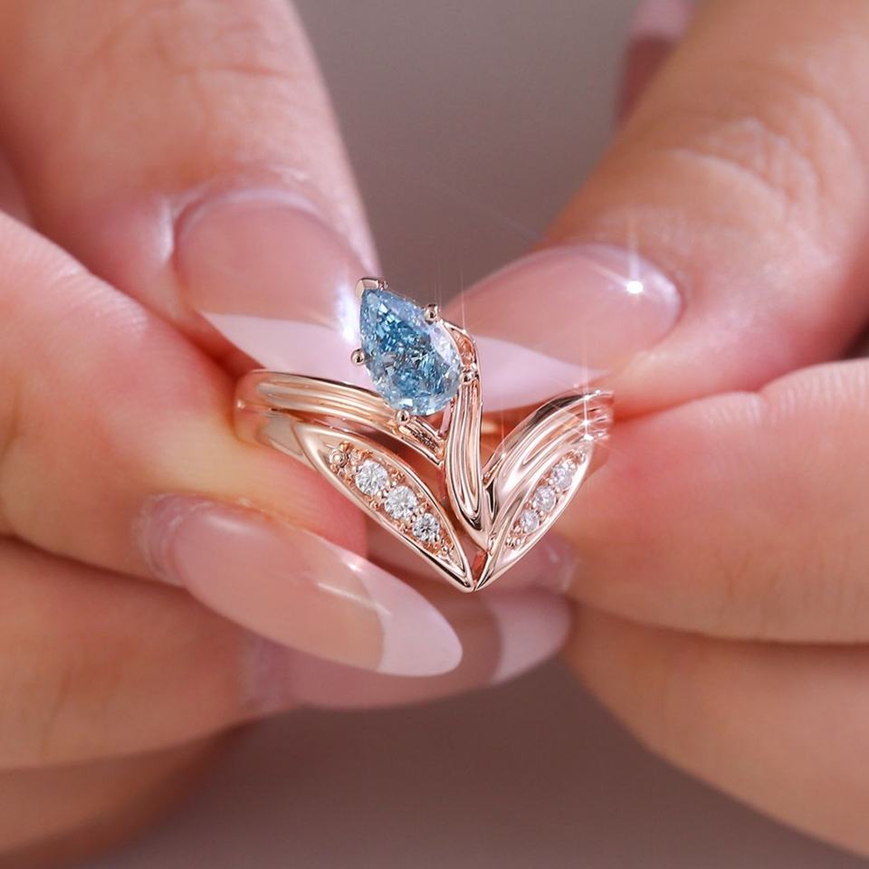 แหวนเพชรบลูไดมอนด์ใหม่ล่าสุด ทองคำ 10K สีเหลือง ดีไซน์โรแมนติก เพชร HTHP ผลิตในห้องปฏิบัติการ มีสินค้าจำนวนมากสำหรับผู้หญิง งานแต่งงาน เครื่องประดับ