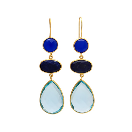 ใหม่มาถึงสีฟ้าไฮโดร,สีฟ้า Chalcedony & Lapis พลอย925สเตอร์ลิงลูกแพร์และรูปไข่ต่างหูเงิน