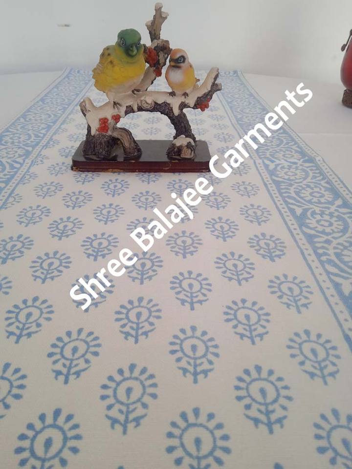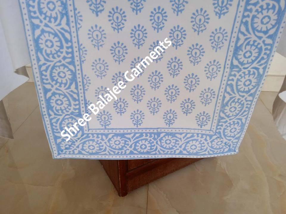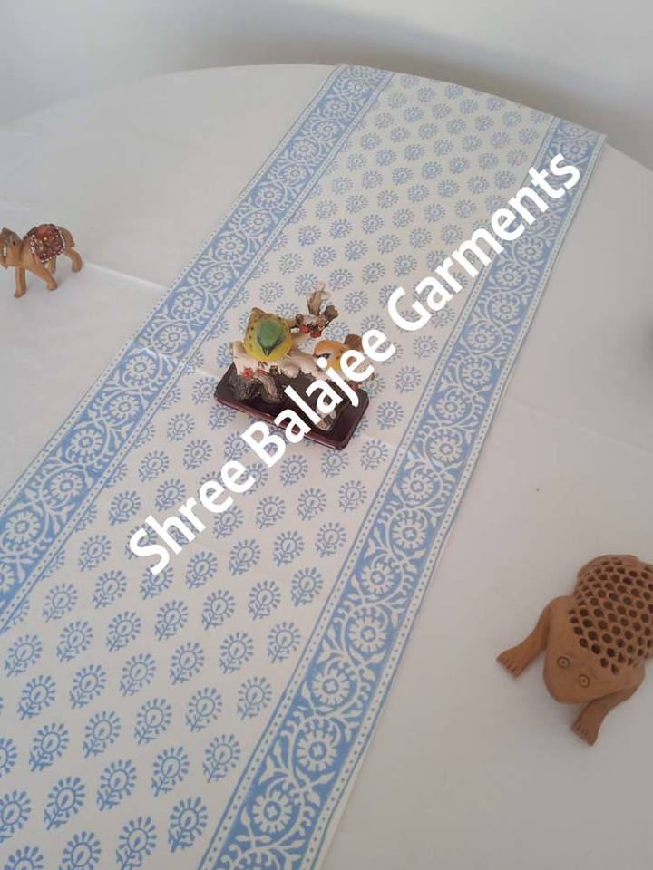 ผ้าปูโต๊ะผ้าฝ้ายพิมพ์ลายดอกไม้สีฟ้าสำหรับงานแต่งงานงานอีเวนต์งานแต่งงานงานวิ่งบล็อกด้วยมือปรับแต่งได้ทันสมัย