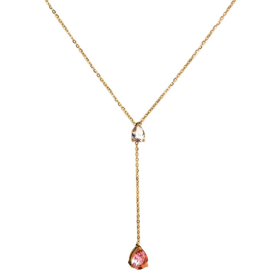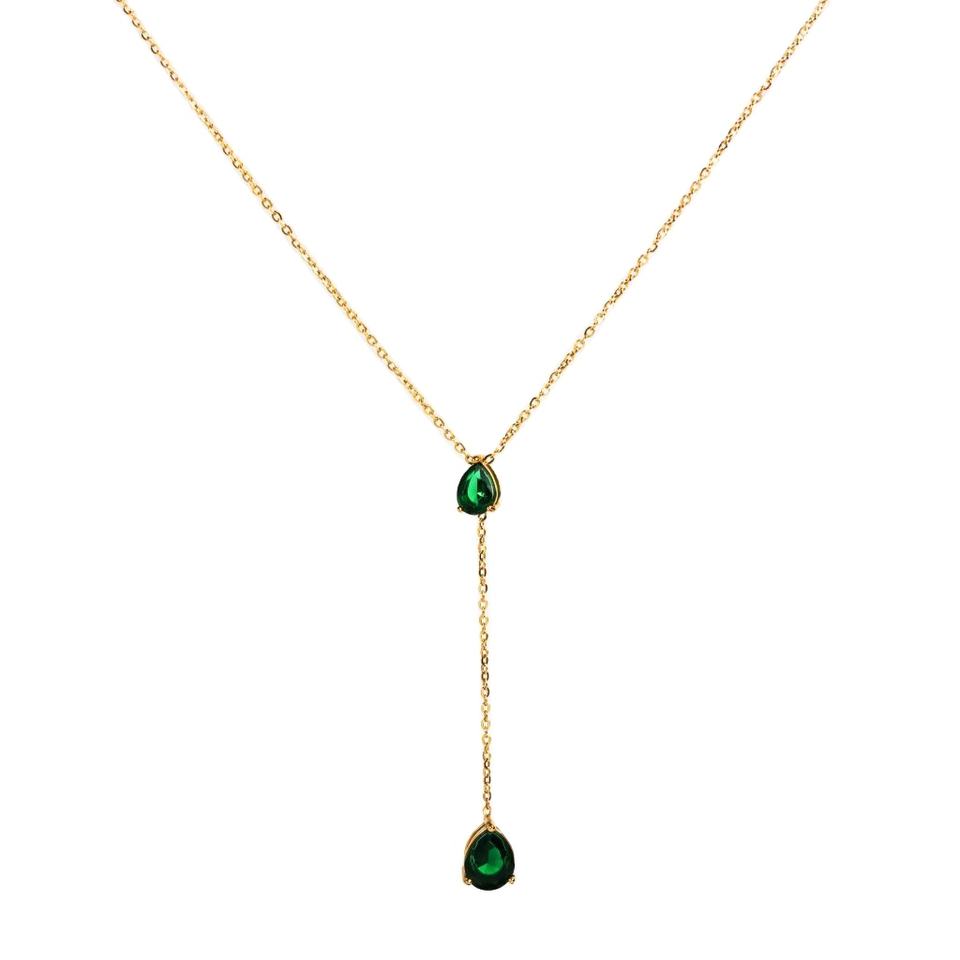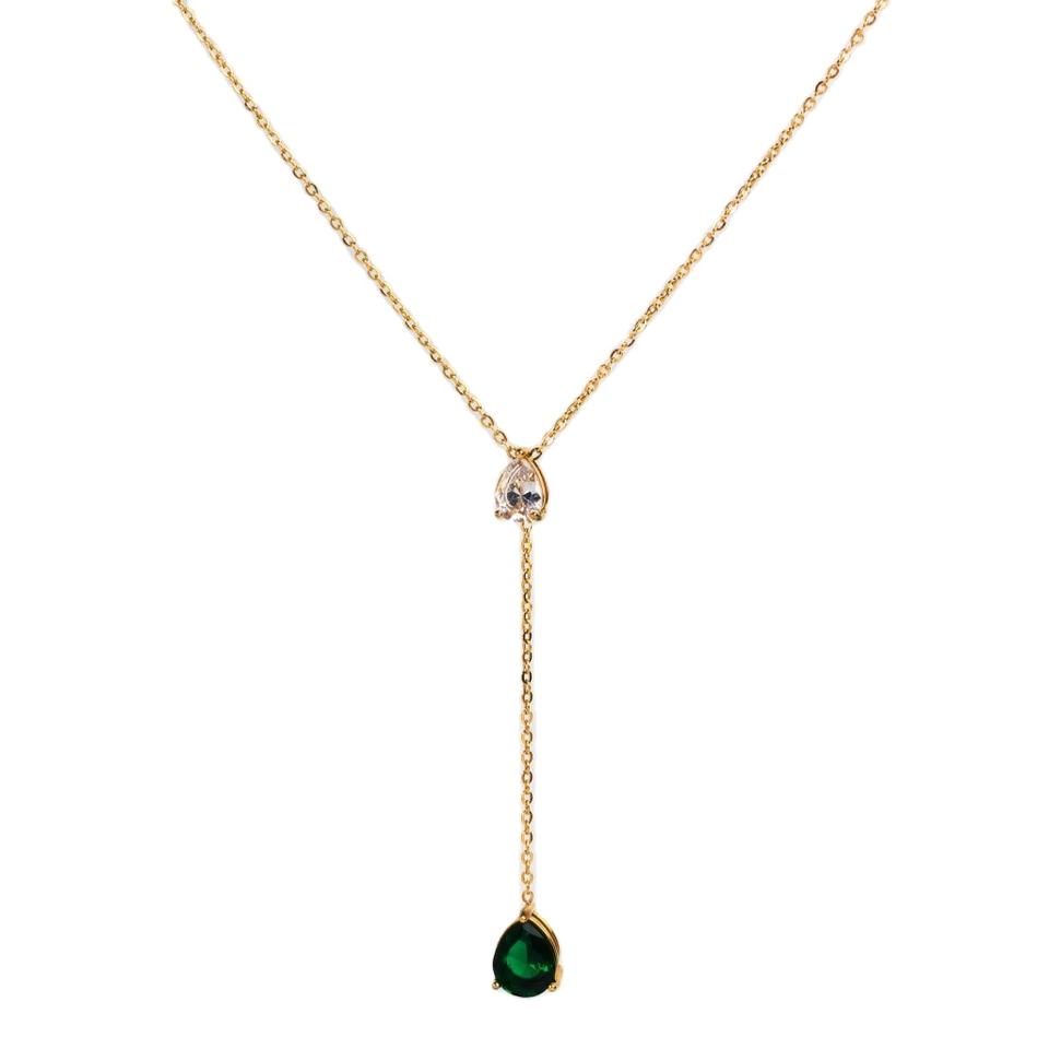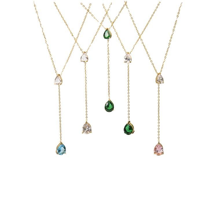 สร้อยคอจี้รูปหยดน้ำสไตล์โบฮีเมียนชุบทองประดับเพชรเทียมสแตนเลสสำหรับผู้หญิงรุ่นใหม่