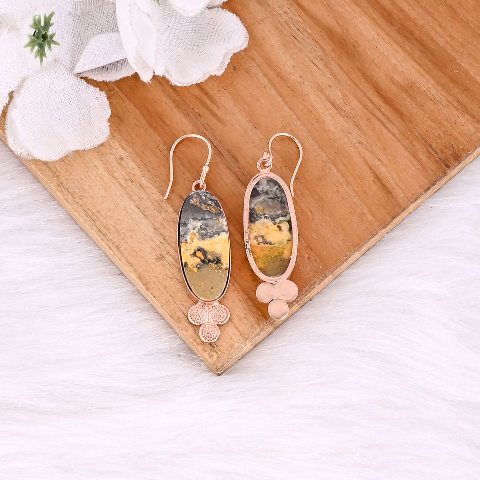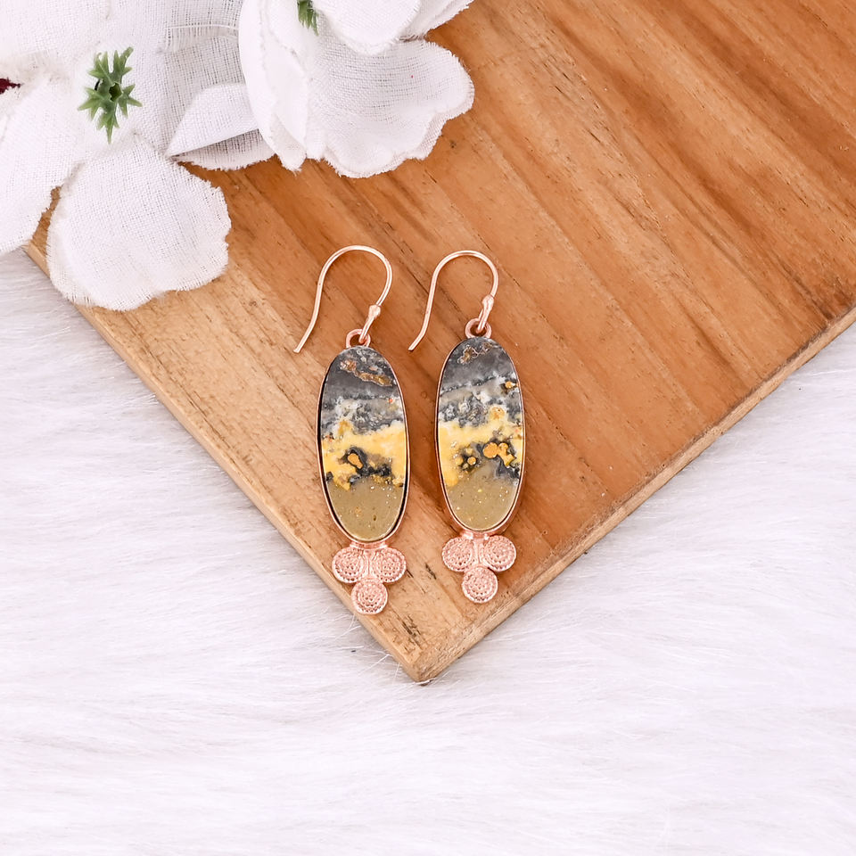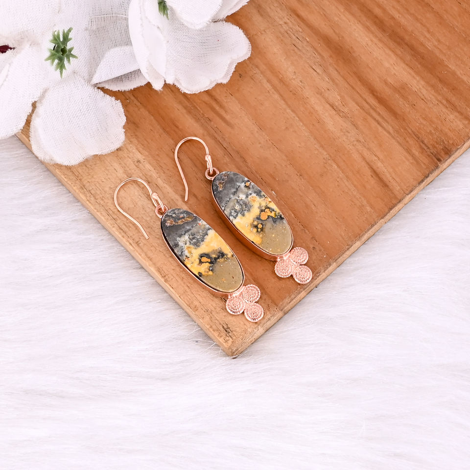 ต่างหูหินแจสเปอร์ลายผึ้งโบโฮแบบใหม่มาแรง ต่างหูห้อยประดับทองเหลืองชุบทองคำสีกุหลาบ สำหรับผู้หญิง เหมาะสำหรับเป็นของขวัญ