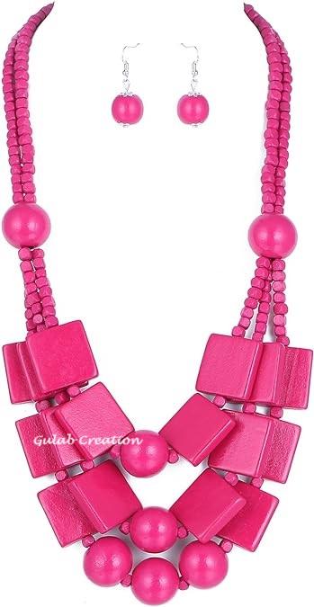 Boho สร้อยคอไม้สีแดงกุหลาบ3ชั้นสำหรับผู้หญิงสร้อยคอสัญลักษณ์ทางศาสนาคริสเตียนมาใหม่
