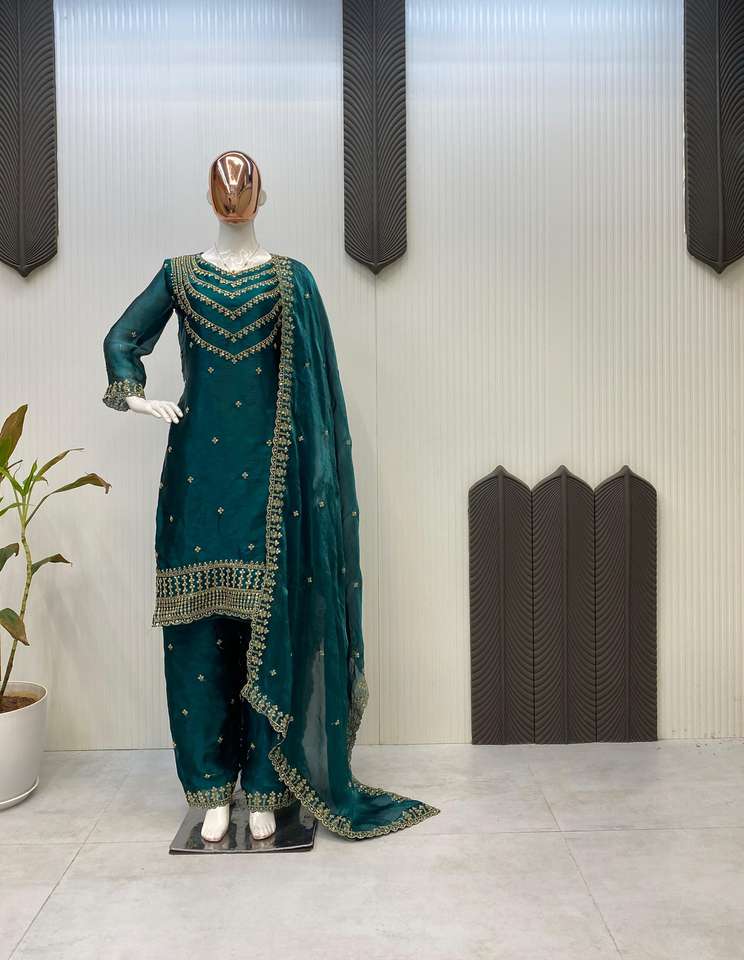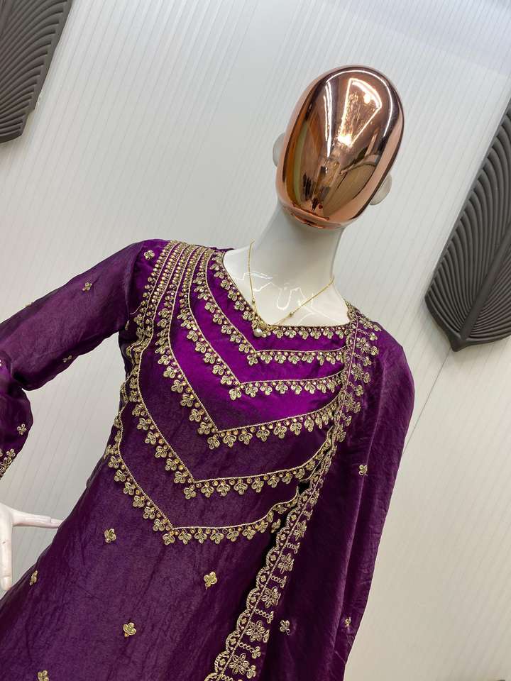 ชุดเคอร์ตาผ้าไหมบอลลีวูดสำหรับผู้หญิงชุดสูทผ้าไหมพิมพ์ลายแบบปัก