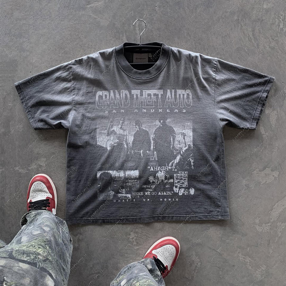 เสื้อยืดแขนสั้นสำหรับผู้ชาย, เสื้อยืดผ้าฝ้ายพิมพ์ลายไซส์ใหญ่พิเศษเสื้อลำลองทรงหลวมซักกรด