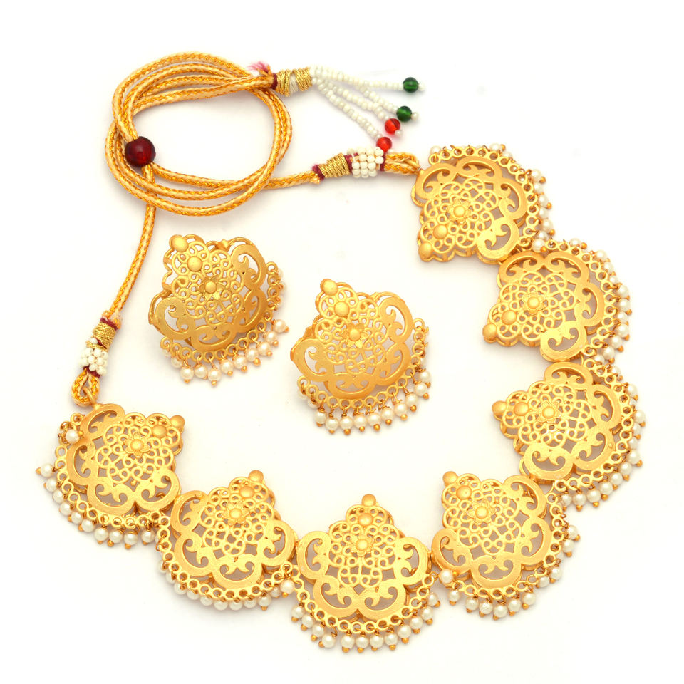 Product Name:Gold Plated Heavy Necklace Set Jaali Work Bridal Wedding Wear Jewelry