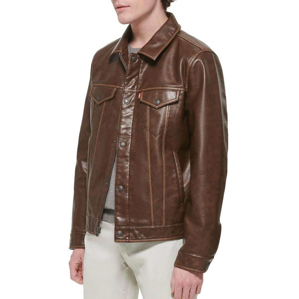 แจ็คเก็ตหนังแท้สีน้ำตาลรุ่นใหม่ล่าสุด คอปกไบรอนแบบสั่งทำพิเศษ ติดกระดุมแป๊ก แจ็คเก็ตหนังทรงบอมเบอร์สุดเท่สำหรับฤดูหนาว