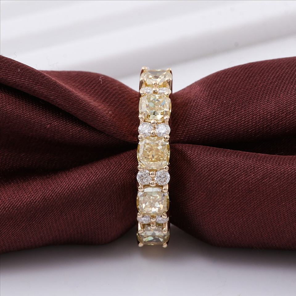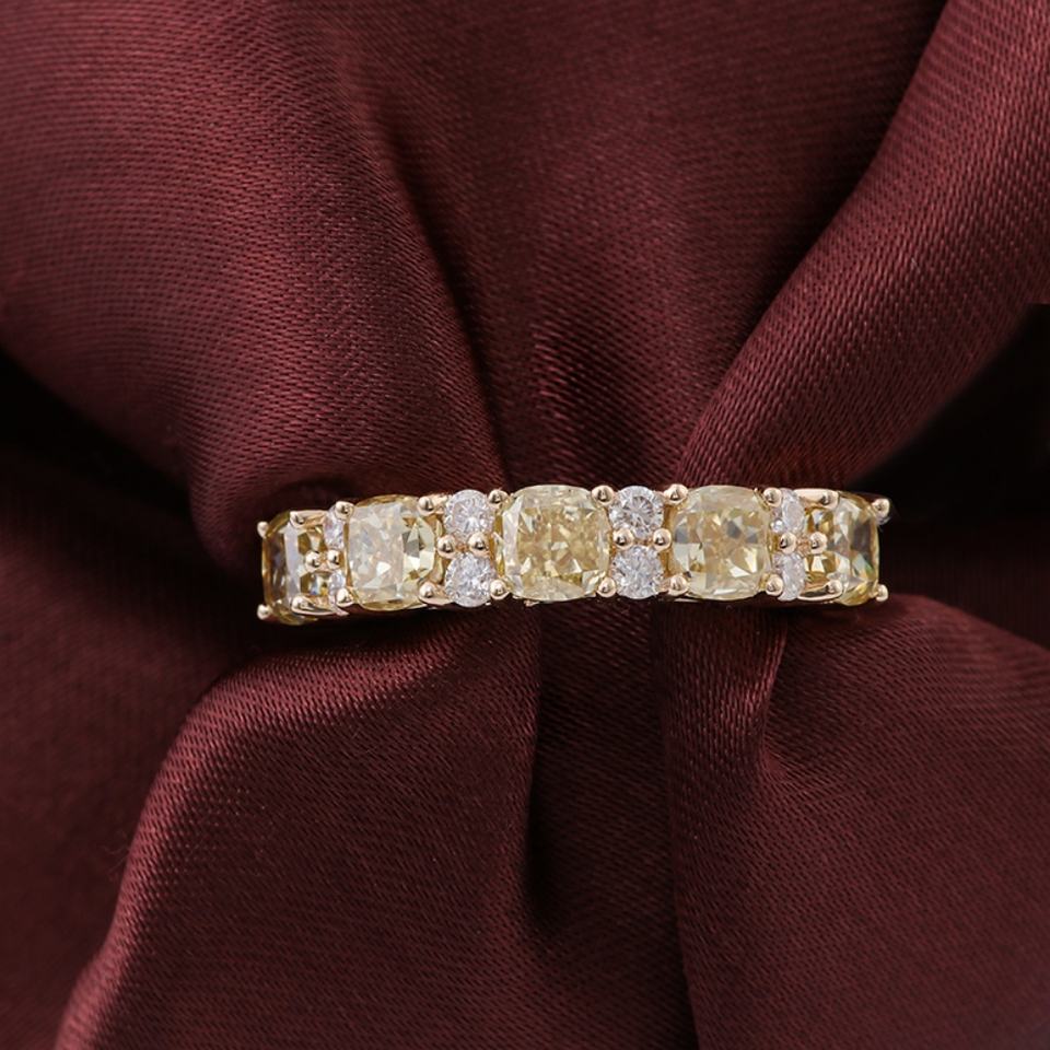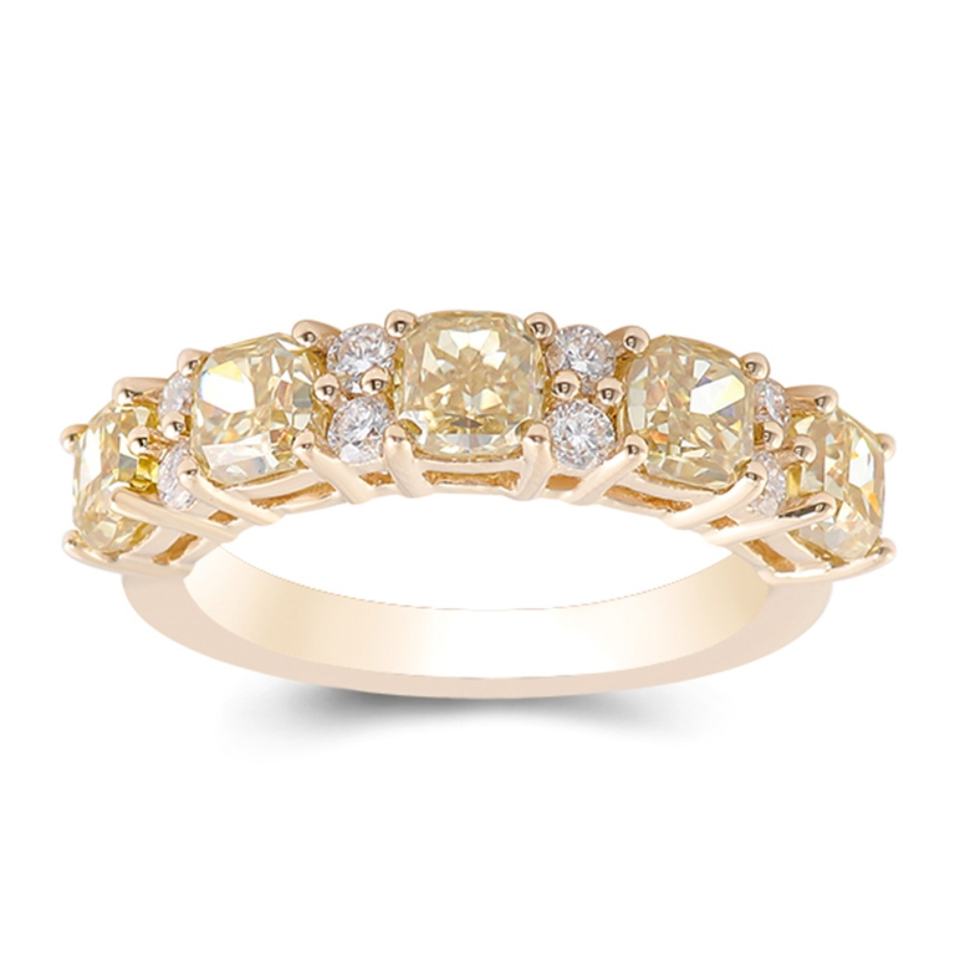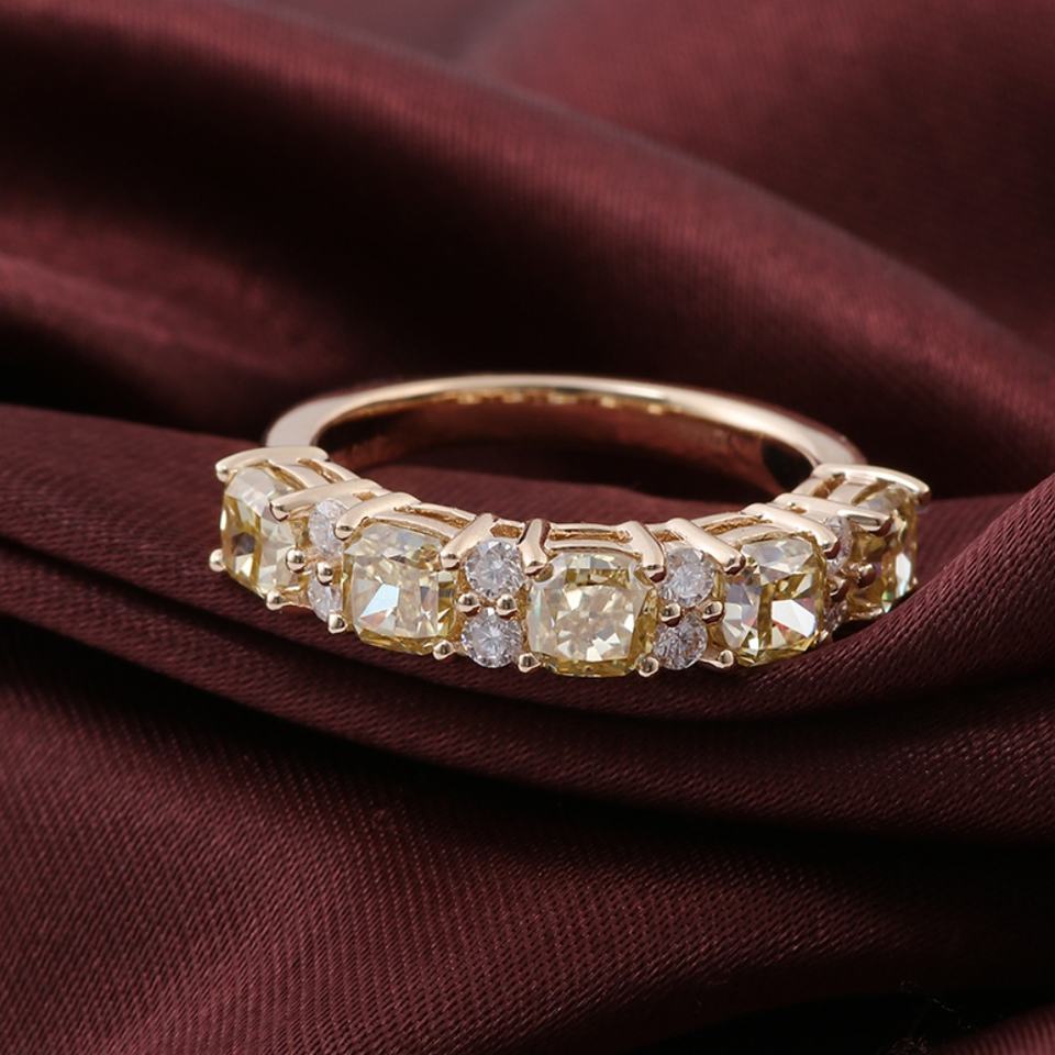 แหวนทองคำแท้ 14K ดีไซน์หรูหรา แบบครึ่งวง ประดับเพชรโมอิสซาไนต์สีเหลืองขาว สำหรับผู้หญิง แหวนหมั้น สินค้ามาใหม่ มีจำนวนมาก