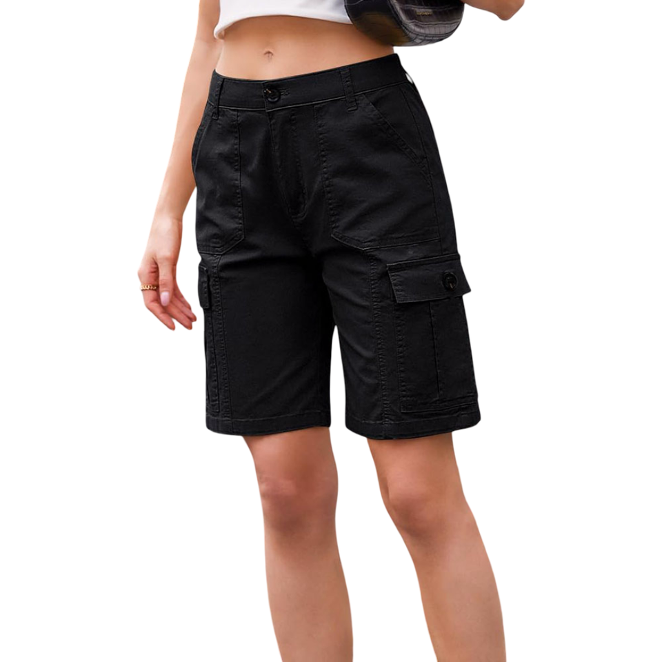 กางเกงคาร์โก้ขาสั้นสำหรับผู้หญิง, สินค้ามาใหม่กางเกงขาสั้นระบายอากาศสีพื้นแฟชั่นลำลองสวมใส่ทุกวันสไตล์คลาสสิกฤดูร้อน