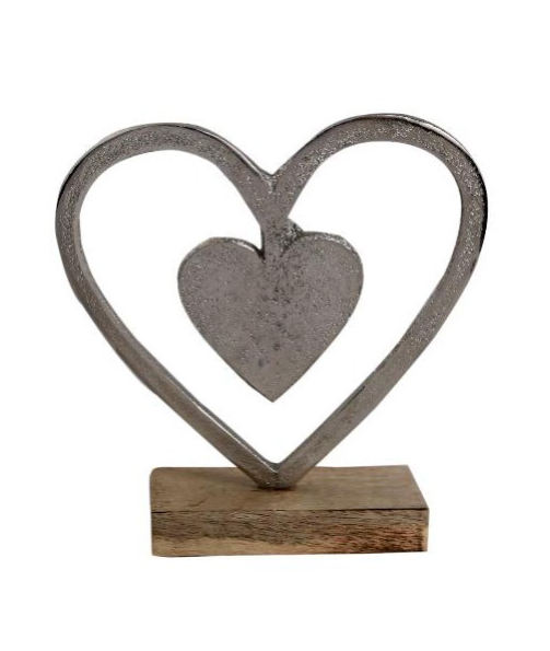 มาใหม่หล่ออลูมิเนียมหัวใจคู่เงินสําเร็จรูปในกรอบไม้ขายส่งของขวัญตกแต่งคริสต์มาสอุปกรณ์อินเดีย