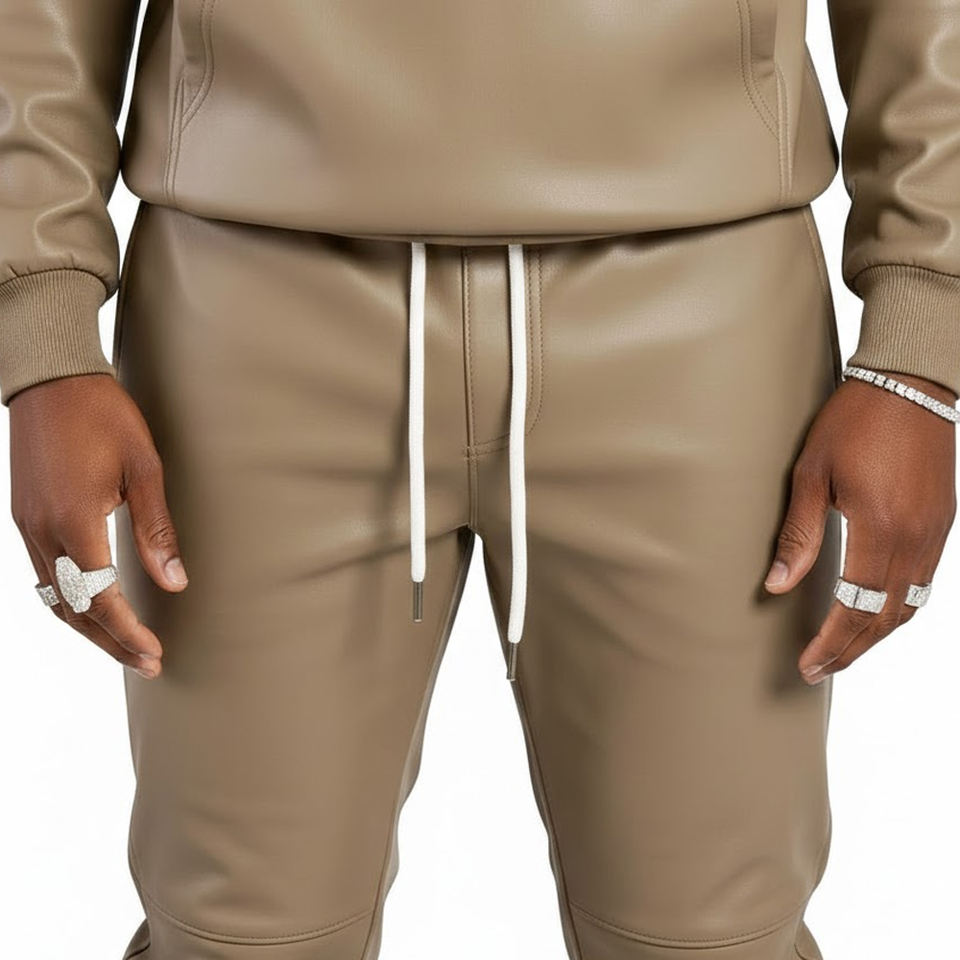 ชุดลำลองผู้ชายแบบใหม่มาแรง ชุดเซ็ทสองชิ้น เสื้อฮู้ดดี้และกางเกงจ็อกเกอร์หนัง ขายดี