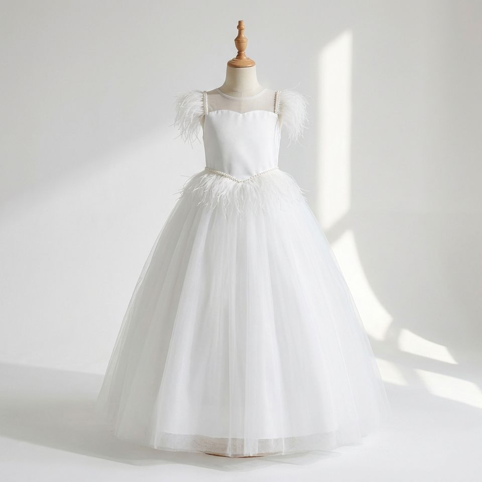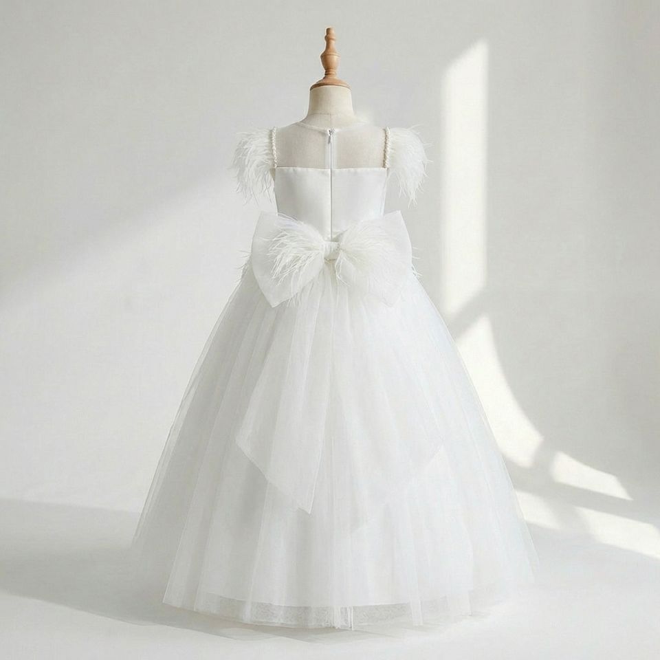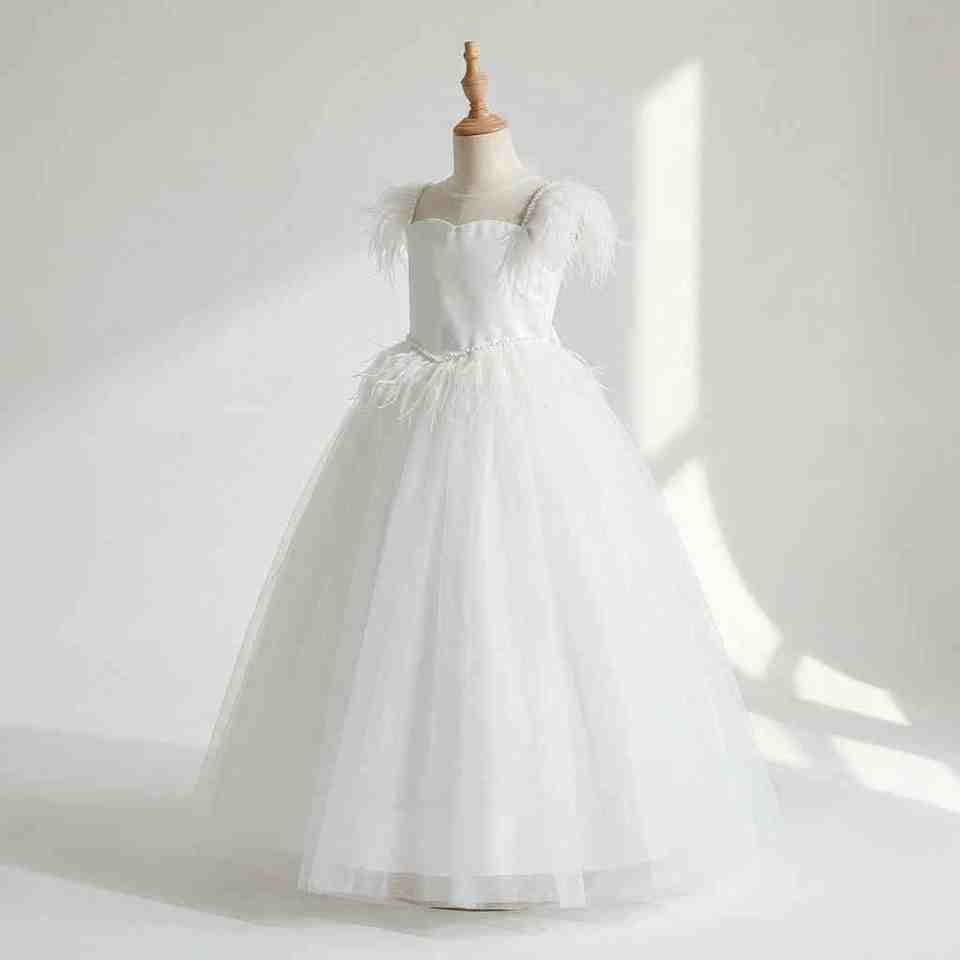 ชุดเดรสออกงานสำหรับเด็กผู้หญิงอายุ 8-12 ปี ดีไซน์ใหม่ คุณภาพสูง สายรัดขนนก สไตล์เจ้าหญิง