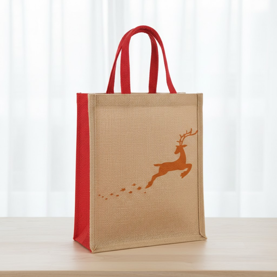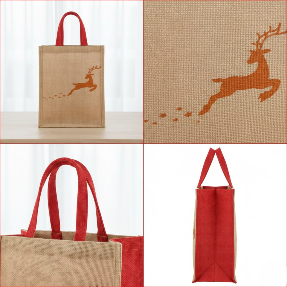 กระเป๋าช้อปปิ้งคริสต์มาสแบบสั่งทำรุ่นใหม่ | กระเป๋าหิ้วแบบรักษ์โลก ใช้ซ้ำได้ มีซิปปิด ขนาดกลาง ลายพิมพ์ไม่ซ้ำใคร เหมาะสำหรับใช้เป็นของแจก