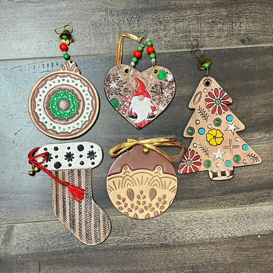 ของตกแต่งกลางแจ้งคริสมาสต์สินค้ามาใหม่อุปกรณ์ตกแต่งหนังวัวรูปทรงกลมห้อยประดับต้นคริสต์มาส