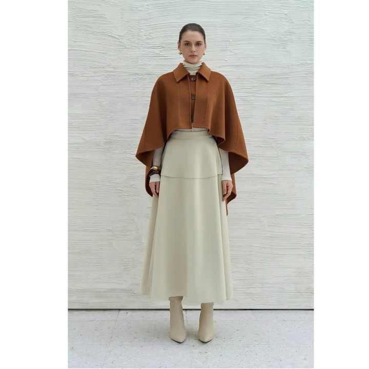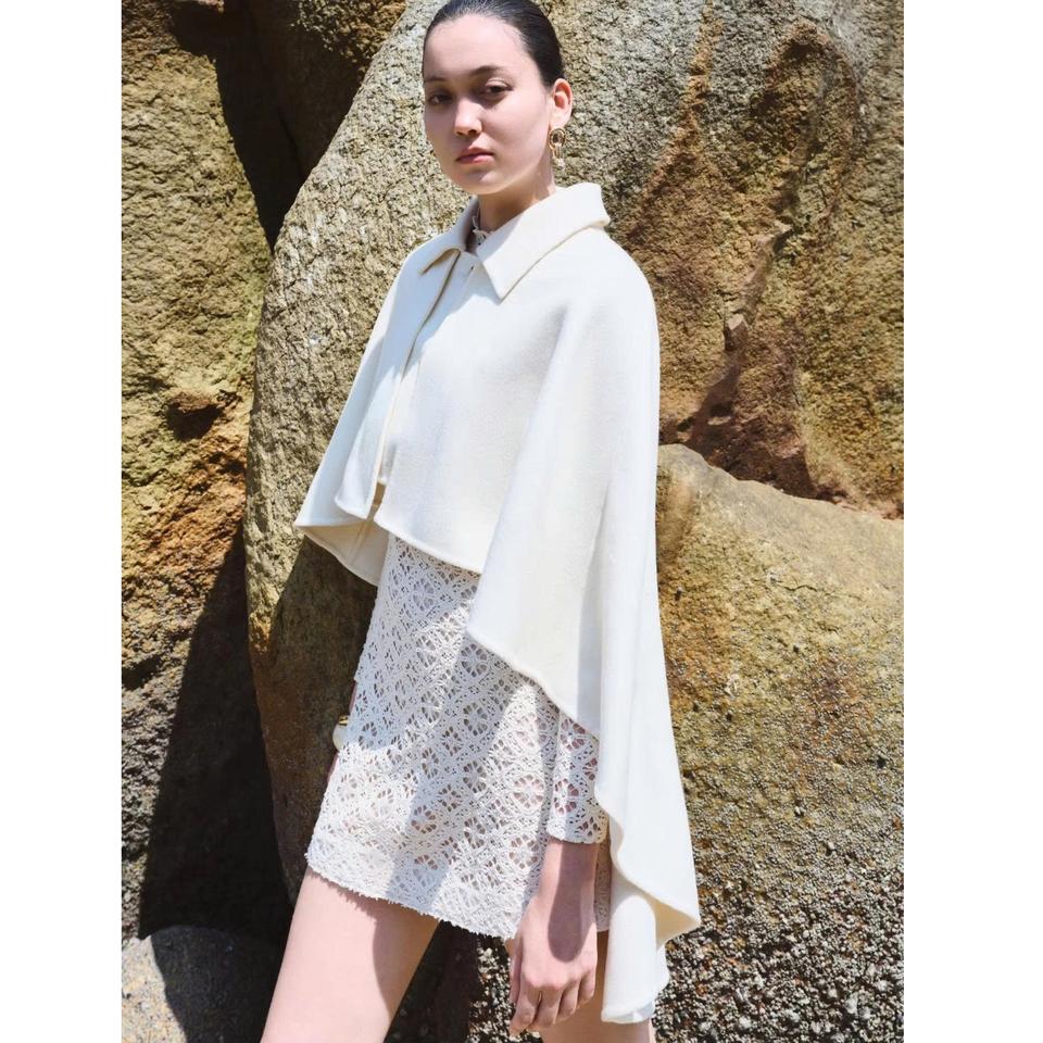 เสื้อโค้ทผู้หญิงมาใหม่ ดีไซน์หรูหรา HINA EMB CASHMERE-BLEND CAPE ติดกระดุม สไตล์ลำลอง ผ้าแคชเมียร์ แขนกุด ผลิตจากเวียดนาม