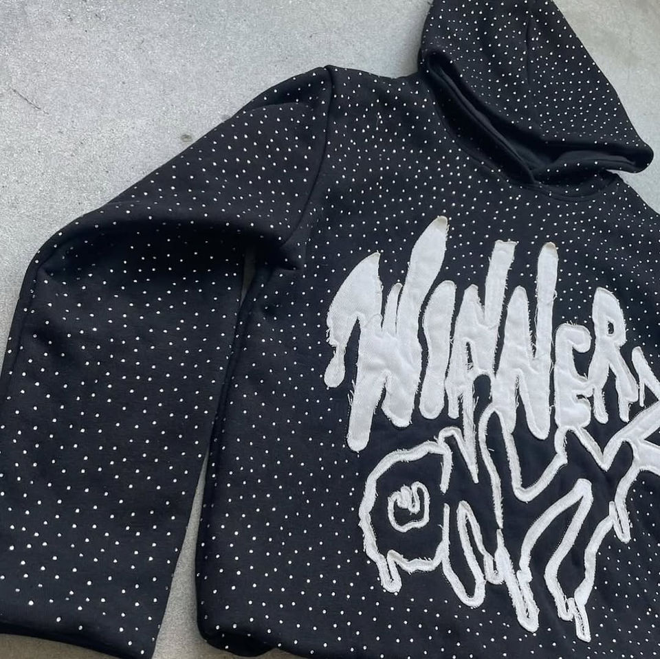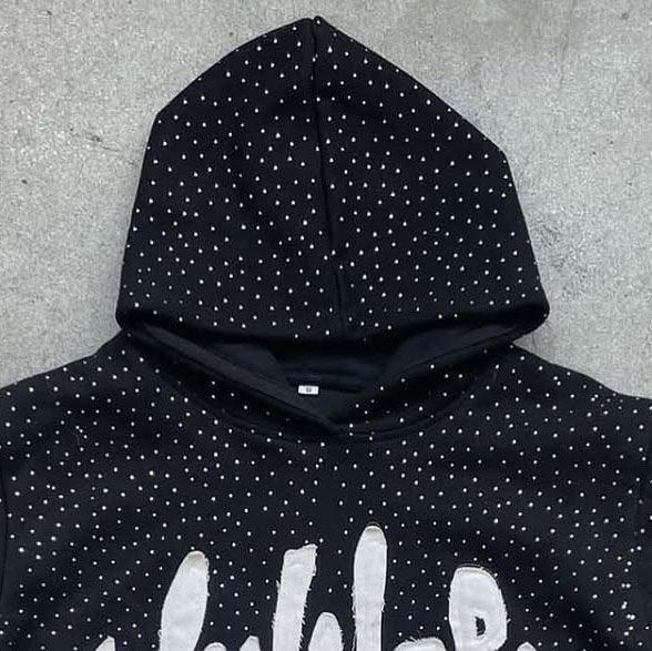 New Arrival Cotton Blended Heavy Weight Vintage Rhinestone Hoodie for Men Plus Size Hooded with Plain Dyed Technique for Winter