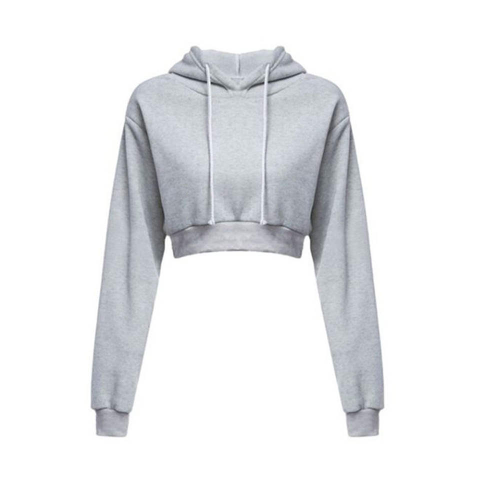 เสื้อสวมหัวผ้าฟลีซผ้าฝ้ายผู้หญิง, เสื้อครอปโอเวอร์ไซส์ระบายอากาศได้ดีดีไซน์ด้านหน้าตามสั่งสีพื้นฤดูใบไม้ร่วง