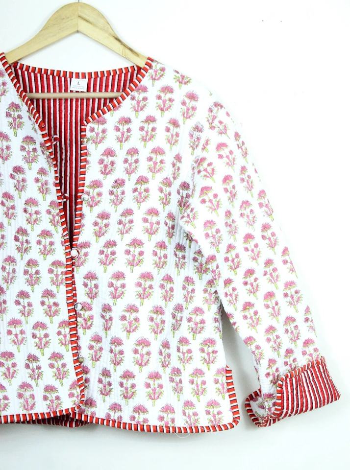มาใหม่ล่าสุดผ้าฝ้ายบล็อกมือพิมพ์ผ้าฝ้ายเสื้อแจ็คเก็ตอินเดียทําด้วยมือแพทช์ทํางานแจ็คเก็ตเสื้อBohoผ้าสําหรับผู้หญิง