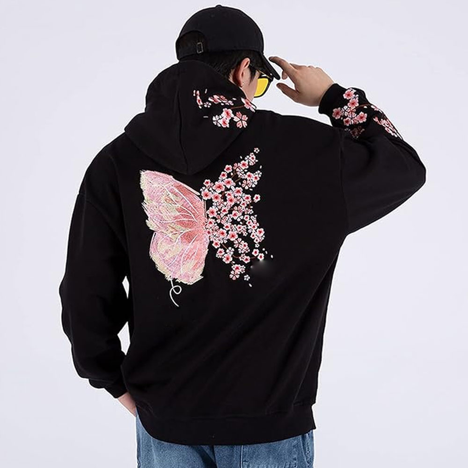 เสื้อฮู้ดปักแบบสวมหัวสำหรับผู้ชายเสื้อฮู้ดปักลายแบบสวมหัวผ้าคอตตอนมาใหม่