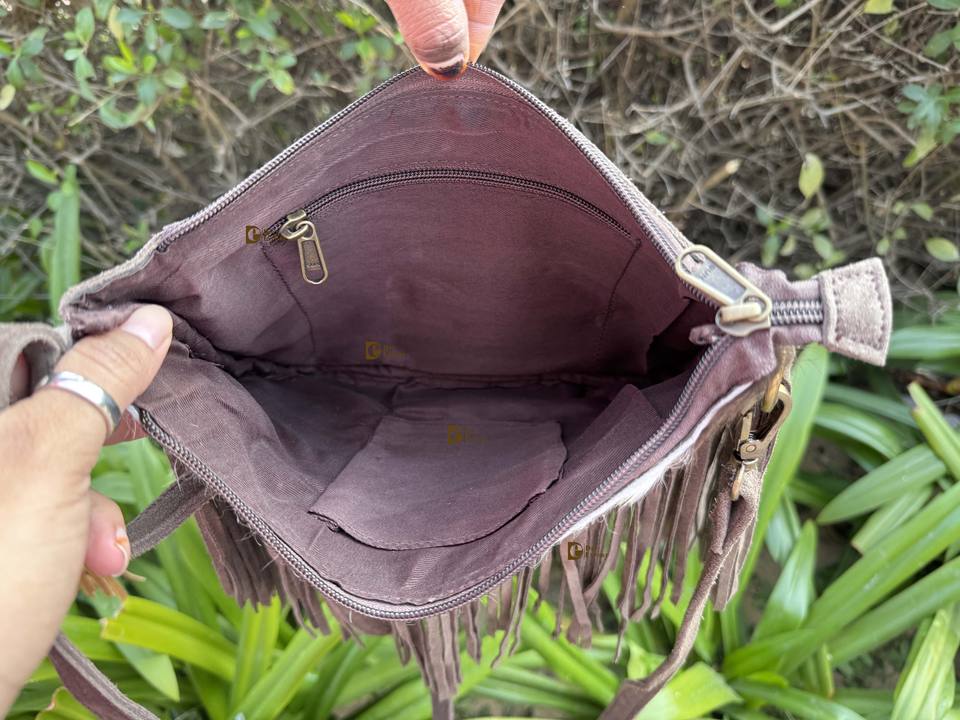 กระเป๋าถือหนังวัวขนสัตว์มาใหม่สำหรับผู้หญิงกระเป๋าสตางค์หนังกลับสไตล์ตะวันตกมีซิปปิดกระเป๋าถืออเนกประสงค์
