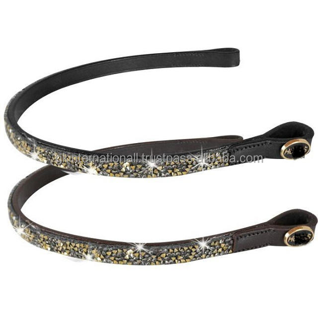 New Arrival Crystals Rhinestones Decorative Handmade All Shape Black English Leather Horse Brow Band at Factory Wholesale Price