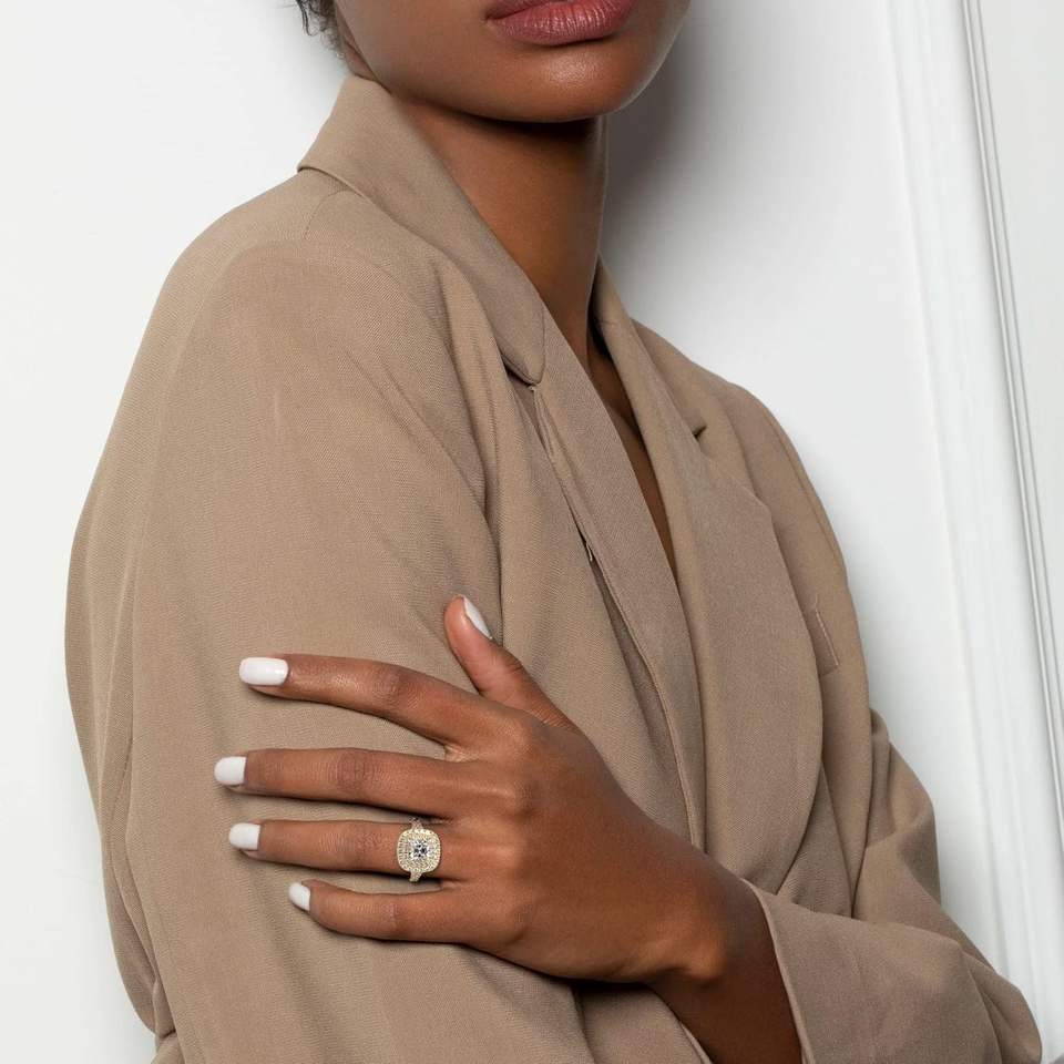 แหวนหมั้นเพชรสองชั้นแบบวงแหวนเพชรมอยส์ซอไนต์อินเดียได้รับการรับรองจากผู้ผลิตสินค้ามาใหม่