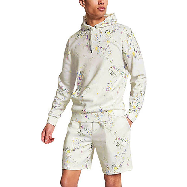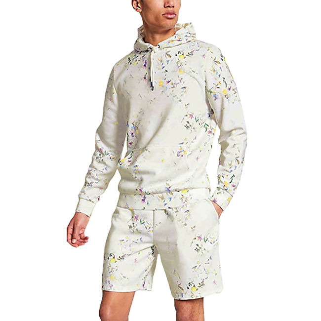 ชุดกีฬาผู้ชายแบบสั้นผ้าฟลีซพิมพ์ลาย