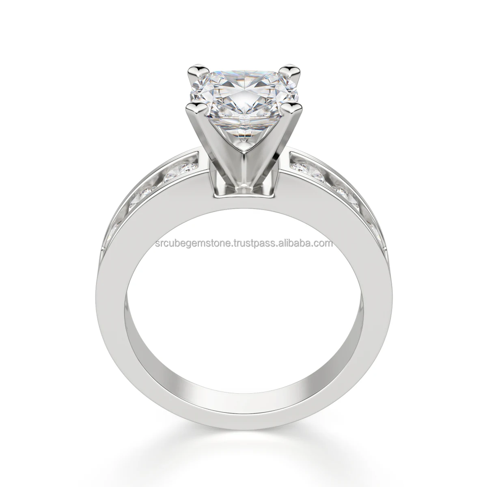 แหวนหมั้นเพชรแบบคลาสสิกสำหรับผู้หญิงแหวนหมั้นเพชรแบบคลาสสิกคลาสสิกตัดเบาะสีทองสีเหลืองล้วนมาใหม่