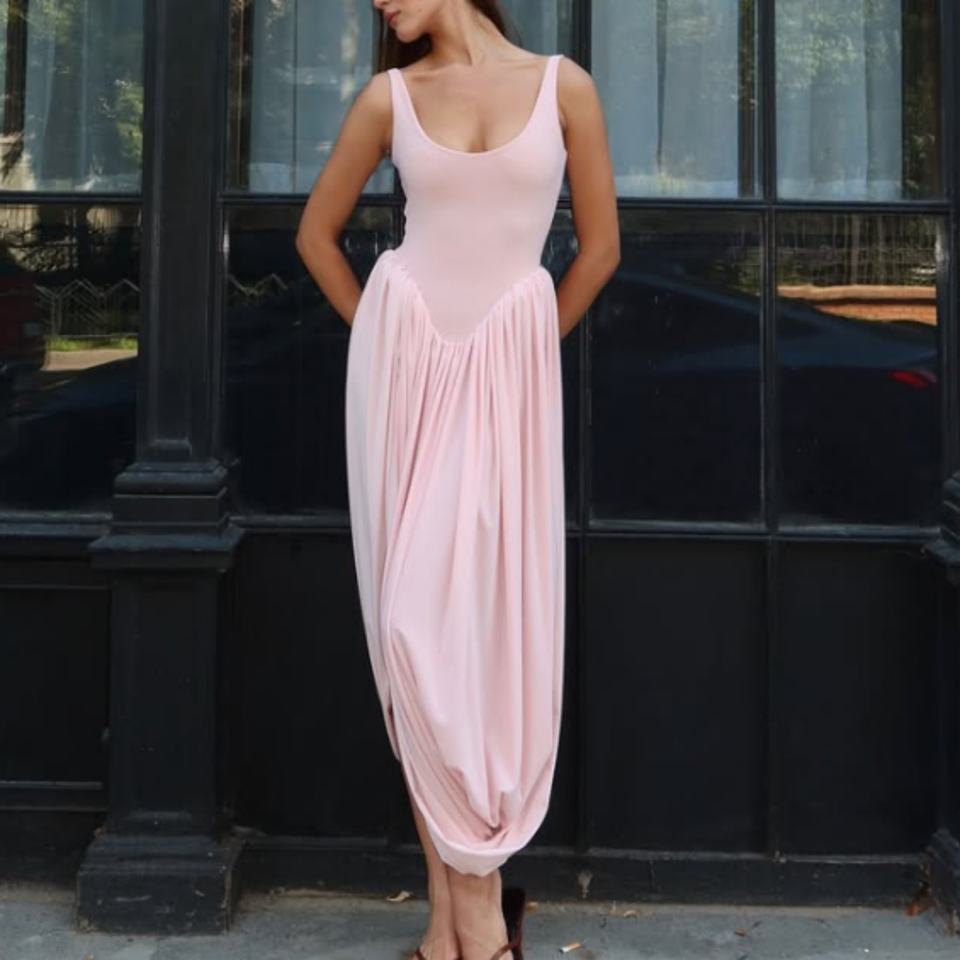 เดรสยาวทรงเข้ารูปผ้าคอตตอนป๊อปลินยืดได้ สีพื้นเรียบง่าย สายเดี่ยว ดีไซน์ผ่าข้าง คุณภาพสูง สินค้ามาใหม่
