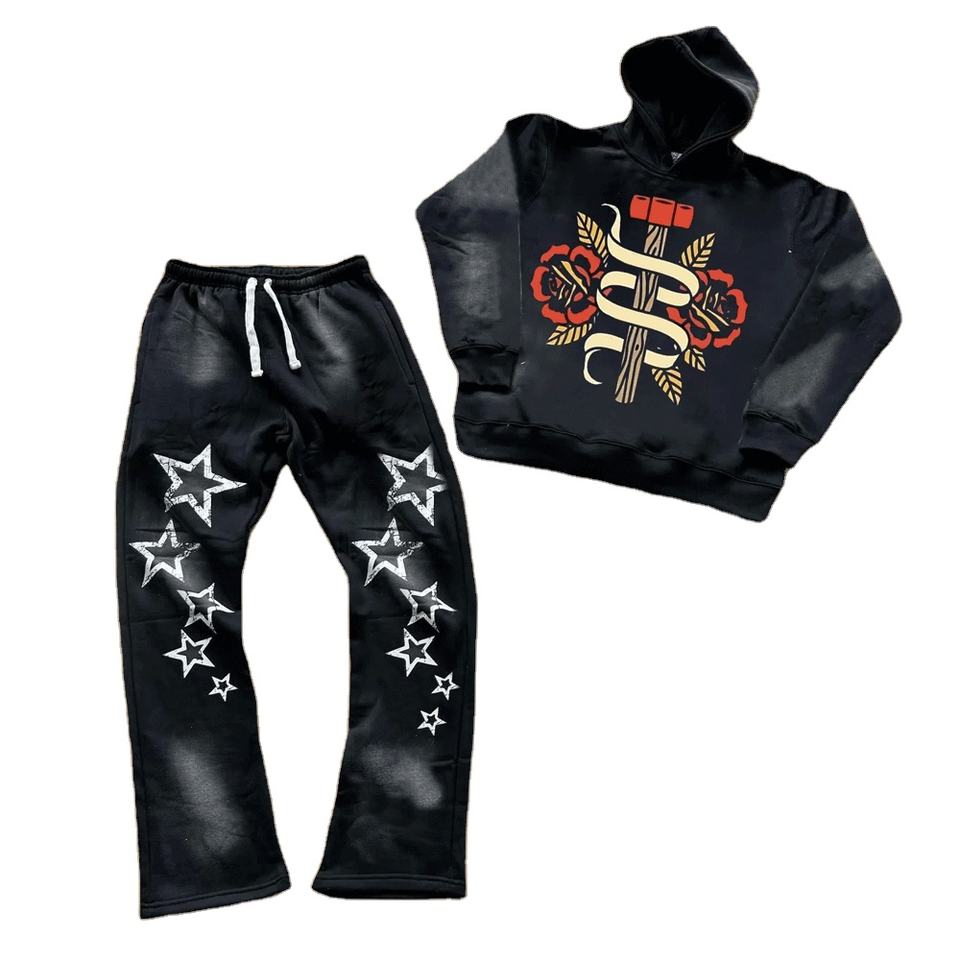 ชุดวอร์มสเวตสูทลายพิมพ์พัฟฟ์ ล้างสีแบบแอซิด คุณภาพสูง ผลิตตามสั่ง พร้อมโลโก้ 100% ผ้าฝ้าย ราคาขายส่ง สำหรับผู้ชาย
