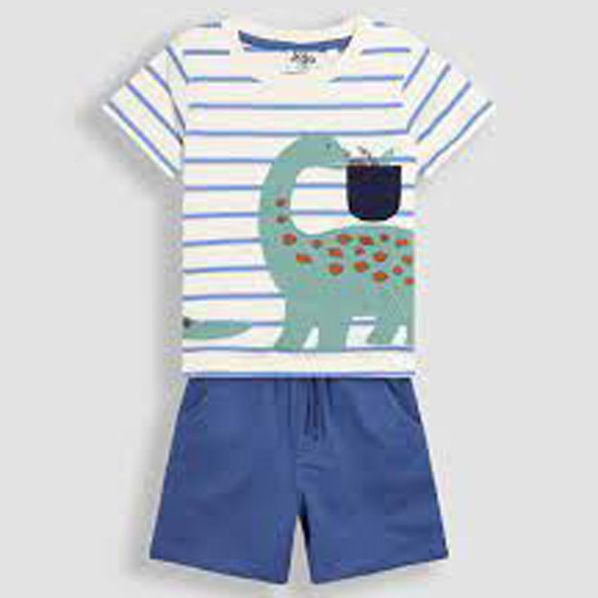 ชุดเสื้อผ้าเด็กชายธีมมารีน: เสื้อเชิ้ตฤดูร้อนและกางเกงยีนส์ขาสั้น