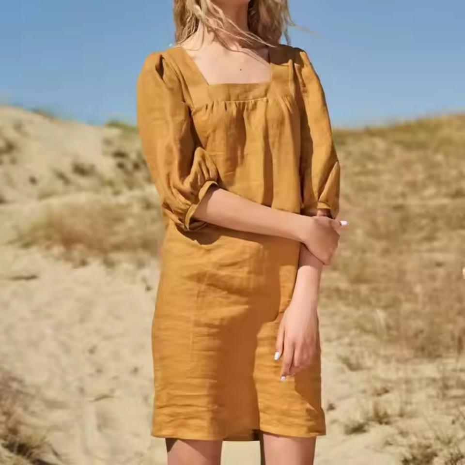 เดรสผ้าลินินสั่งตัดแบบใหม่ ไซส์ใหญ่ คุณภาพสูง ขายส่ง ราคาสบายกระเป๋า ชุดเดรสชายหาดเรียบหรูสำหรับสุภาพสตรี