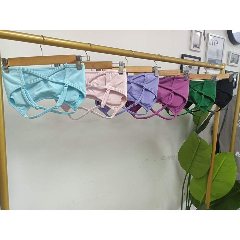 บราออกกำลังกายผ้าไนลอนสแปนเด็กซ์ระบายอากาศระบายอากาศระบายอากาศได้สำหรับเล่นโยคะฟิตเนสแบบครอสแบคโลโก้ออกแบบได้ตามต้องการ