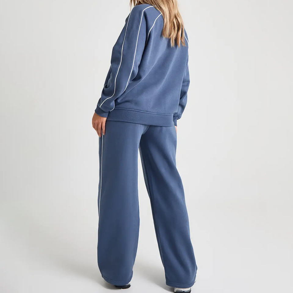 ชุดวอร์มออกใหม่ ปักโลโก้ได้ สีฟ้าอ่อน แต่งขอบด้วยผ้าสีน้ำเงิน สำหรับผู้หญิง ใส่เล่นกีฬากลางแจ้ง ระบายอากาศได้ดี สไตล์ไฮสตรีท