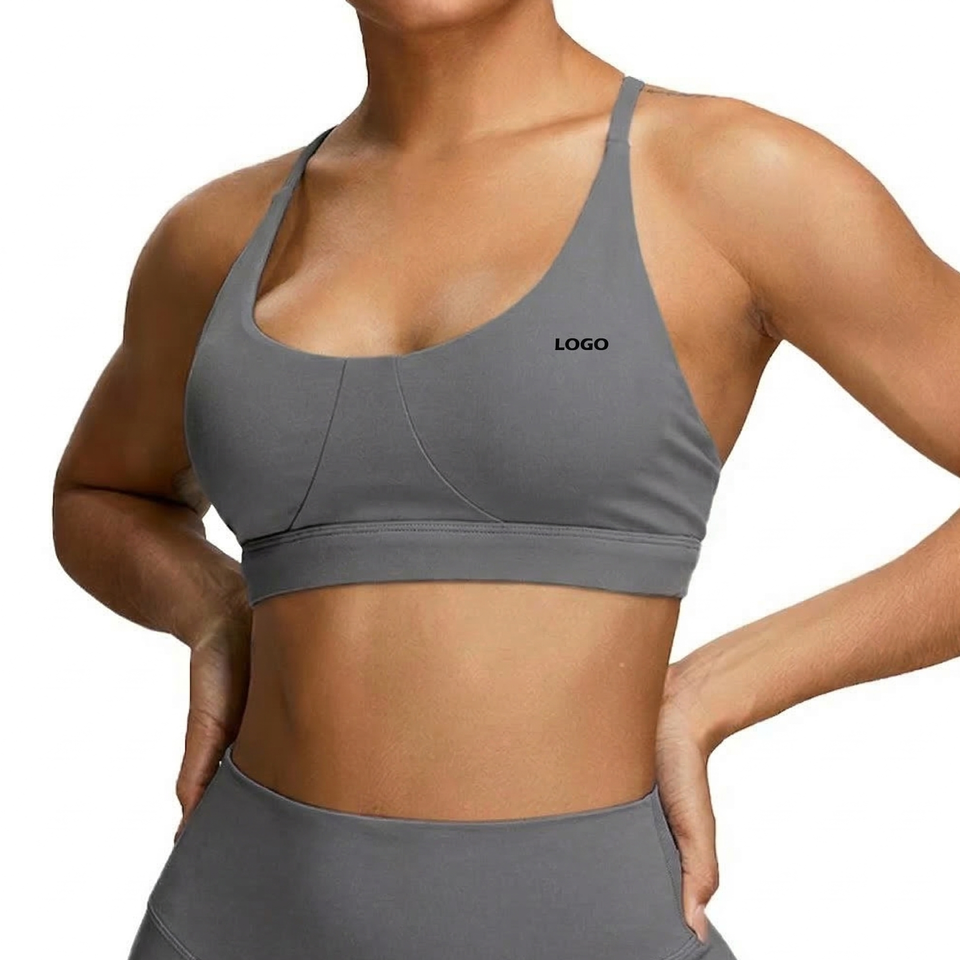 สปอร์ตบราโยคะแบบใหม่ ดีไซน์โลโก้ด้านหน้า น้ำหนักเบา รองรับได้ดี สำหรับผู้หญิง ทรง Racerback คอวี ผลิตจากผ้าไนลอน 75% สแปนเด็กซ์ 25%