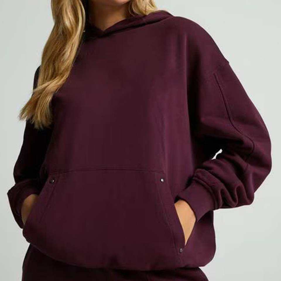 ชุดวอร์มสีแดงเลือดหมูแบบมีฮู้ด แขนยาว สกรีนโลโก้ได้ตามต้องการ สำหรับผู้หญิง ใส่เล่นกีฬากลางแจ้ง ระบายอากาศได้ดี สไตล์ไฮสตรีท ชุดฤดูหนาวสำหรับผู้หญิง