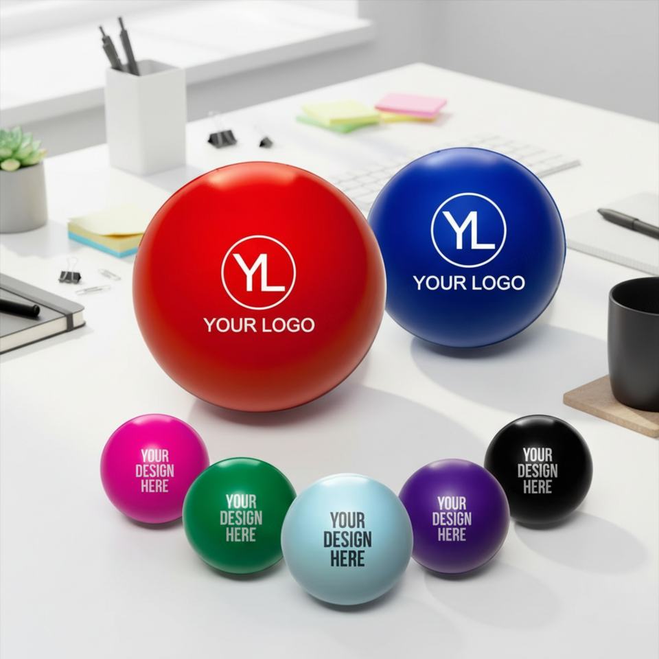 ของเล่นบีบคลายเครียดรูปทรงกลมทำจากโฟม PU พร้อมโลโก้สั่งทำแบบใหม่ ขายส่งสำหรับของขวัญส่งเสริมการขายทางธุรกิจ