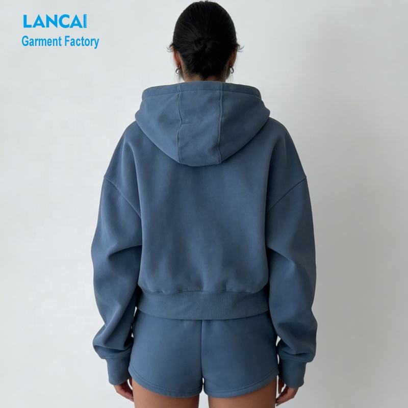 ชื่อสินค้า:เสื้อฮู้ดครอปแบบซิปและกางเกงขาสั้นแบบสองชิ้นสั่งทำพิเศษ