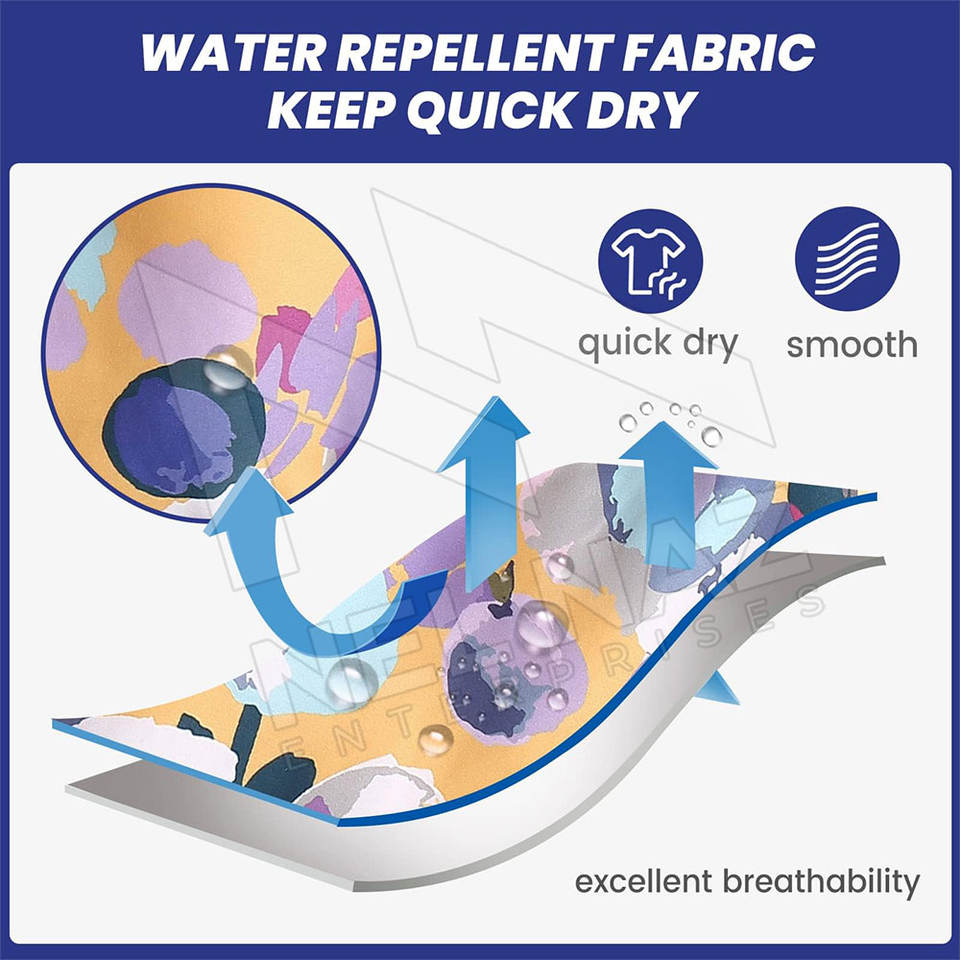ลักษณะ:ต่อต้านริ้วรอย, แห้งเร็ว, กันน้ำ, ระบายอากาศ, เป็นมิตรกับสิ่งแวดล้อม, กันลม