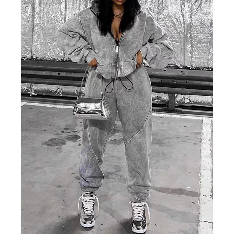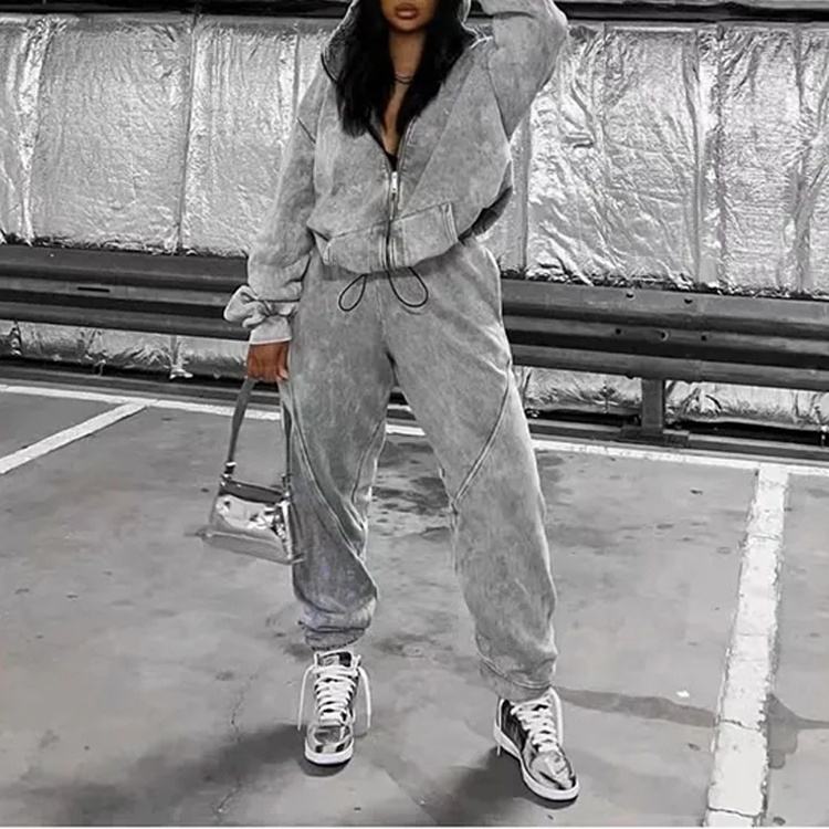 New Arrival Custom Made Women Solid Short Tracksuit 100% Polyester Fleece Zipper Hoodie Flared Swear Pant Tow Piece Set