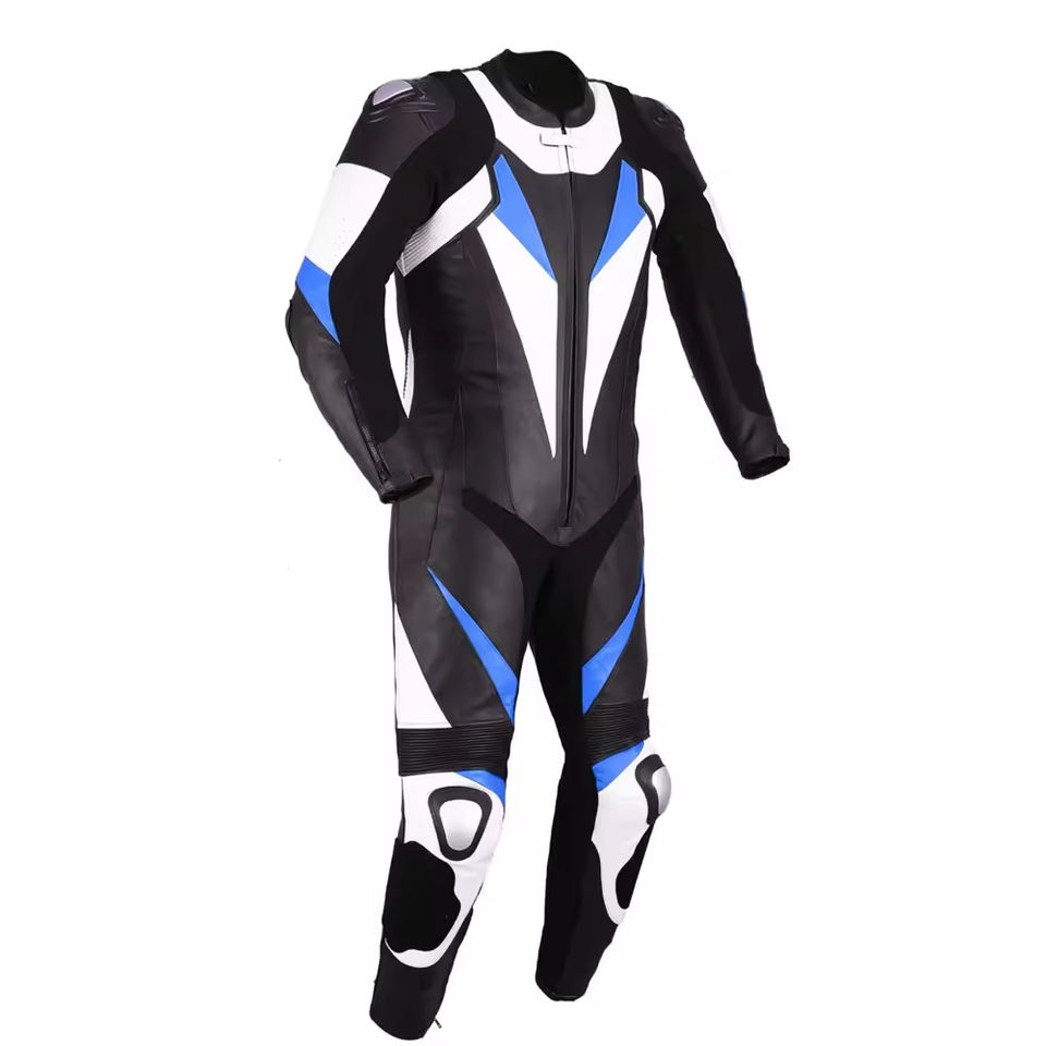 ชุดมอเตอร์ไซค์หนังแท้กันน้ำระบายอากาศดีไซน์สีดำน้ำเงินสำหรับผู้ชายรุ่นใหม่ล่าสุด รับสั่งทำโลโก้ ขายดี