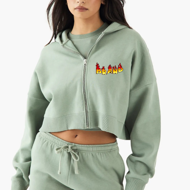 เสื้อฮู้ดครอปซิปเต็มตัวแบบสั่งทำพิเศษรุ่นใหม่ล่าสุด ผ้าฝ้ายฟลีซ ระบายอากาศได้ดี เป็นมิตรกับสิ่งแวดล้อม สำหรับผู้หญิง ออกแบบแบรนด์ของคุณเองได้